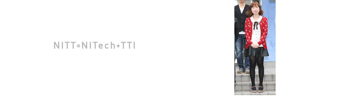 国立と私立の日本でも珍しい連携です。研究における連携は当たり前ですが,入試広報の点でも深い連携関係にあります。NITechとTTIを,左右からつなげたのがNITTです。左から見るとNITechの中の3文字が,右から見るとTTIの3文字が出てきます。単なる遊びですが,これでNITTという言葉を作りました。